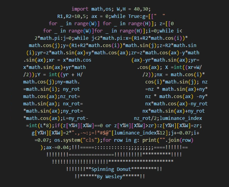 After watching someone make a TikTok video about spinning donut, I decided to create my own 3D donut visualization! It’s a rotating donut rendered in the terminal using ASCII characters. Just a fun project to play with 3D math and also brought back some memories of my old math classes. xD